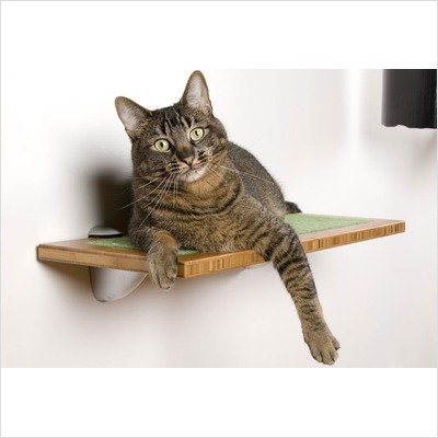 BUBV-MHAM-CB Base Material: Bamboo Amber Vertical, Inserts: Mohair Hamster Pictured with Bamboo Amber base and Mohair Grasshopper inserts When floor space is limited, the Buddha provides a perfect retreat from feet. The Buddha easily mounts on walls or under window sills. With proper installation, the included brackets can support up to 40 lbs. and are easily installed into wall studs or drywall. Catnip can be placed behind or rubbed onto the inserts to further entice scratching and playing. Features: -Wall perch. -Available in black, white or bamboo amber vertical (0.25'' wide grain) laminate base material. -Available in several inserts. -Satin chrome curved brackets. -Easily mounts on walls or under window sills. -Laminated with 100pct recycled wood fiber core. -Velcro backed removable inserts allow you to vacuum, clean, or replace. -No corrugated cardboard mess to clean-up. -Inserts are recessed into base material so the edges are not exposed. -Looped pile carpets are not used, due to snagging on cat claws. -Easy assembly with Phillips screw-driver and no-drill anchors. -Made in USA. -Manufacturer provides 90 days warranty from the date of purchase. -Overall dimensions: 0.75'' H x 22.75'' W x 9.5'' D.
